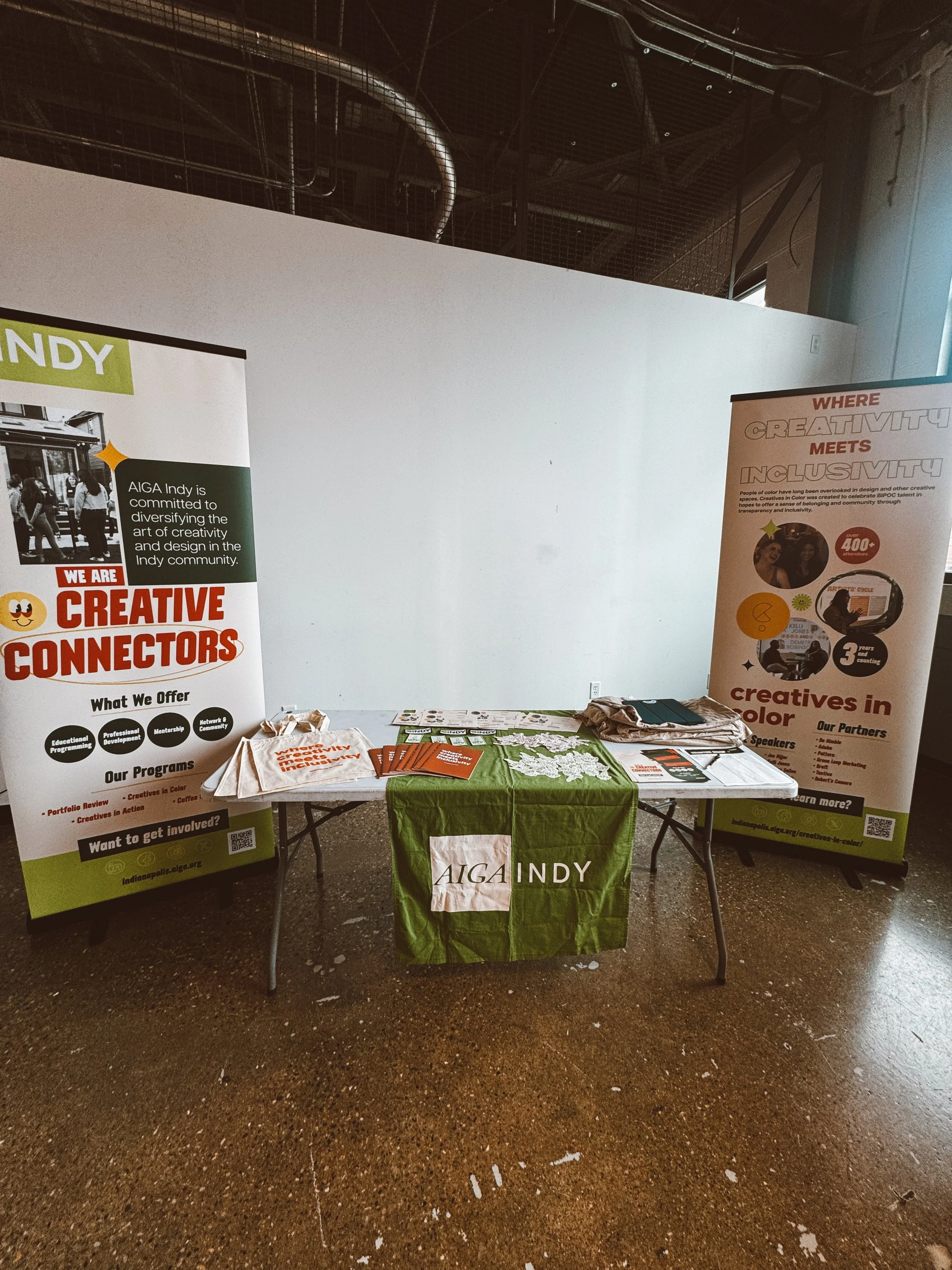 AIGA( American Institute of Graphic Arts) is a national nonprofit organization that serves the design communities around the US. Each local chapter is responsible for creating events for connection and professional development. AIGA Indy specifically was struggling to create engaging programming and events while keeping attendance high. The organization seemed to have partnered with the same organizations for years and lacked a diverse and inclusive strategy for the Indianapolis creative community. Because of this, a lot of community members either felt like they couldn’t attend events or were not welcoming. The creative collaboration was lacking and needed a resurgence to revive the organization to last for years to come.